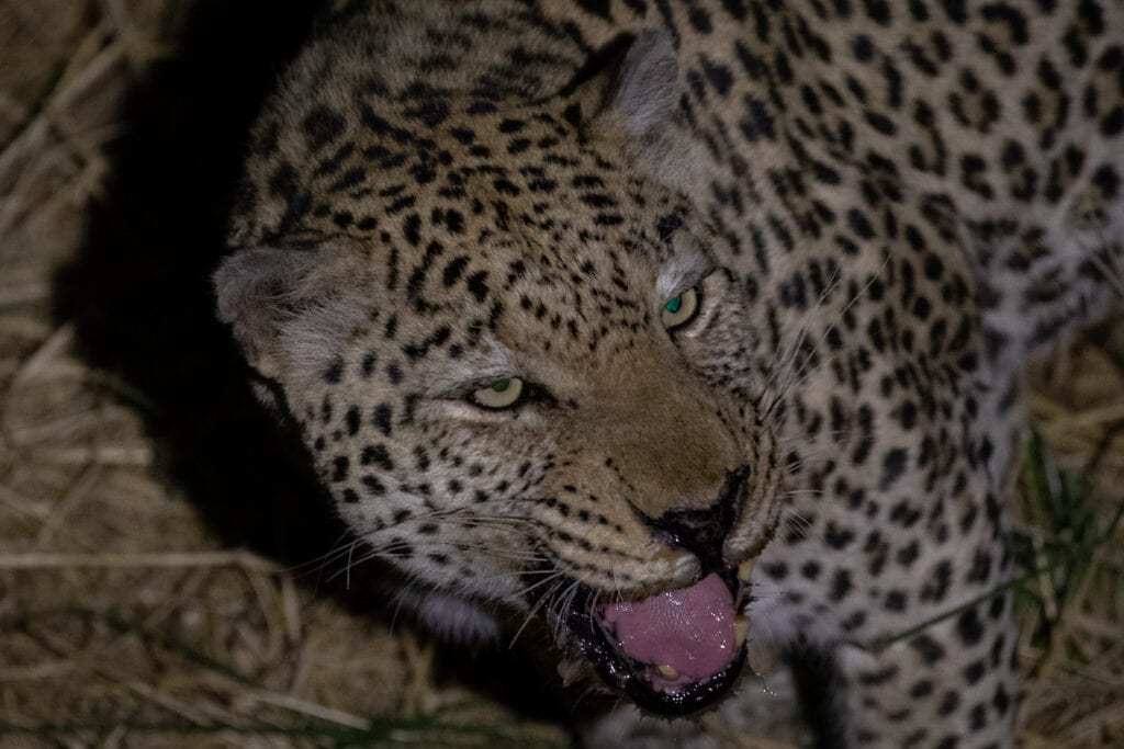 Chris Stamper picked up on drag marks and found the kill in a secluded area, a duiker. We set up a cam and tied the kill to a tree. The leopard returned at 18:00 and took one minute to remove the kill from its binds, the cat wasn’t the only visitor. It was Kalua.