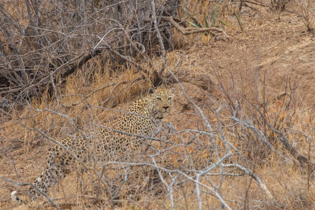 On this evening a leopard was continuously rasping from the northern side of the airforce road, I assume in pride lands. I parked the vehicle at the Drongo/Rotsvy junction and we listened. A leopard responded from the block just south of us. We decided to head to a hole under the eastern fence line, hoping the leopard would be heading for an exit. The plan worked out.